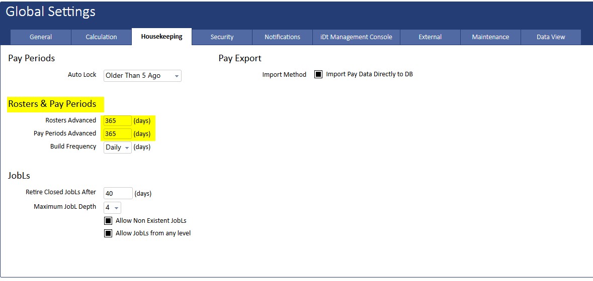 Change default payperiod build ahead to 365 days