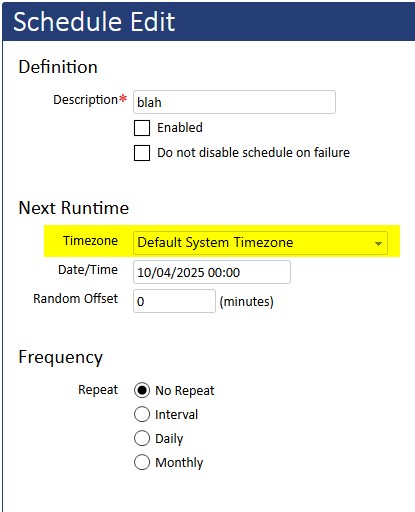 Scheduled task timezone designation