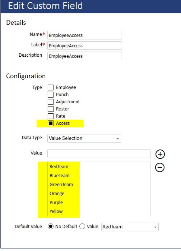 Employee Custom Field type "Employee Access" that can be used for User Employee Access - additional to current Employees/Award/Company Structure